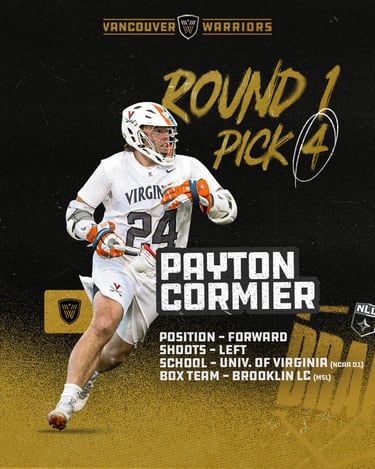 Graphics created for the 2023 NLL draft. These graphics were made live and had to be edited and posted within a minute of the draft pick being called. They were formatted for social media and email.