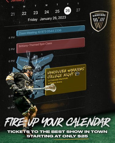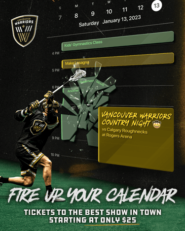 Single game ticket sale marketing promotion. The idea of having a calendar integrated into the design showing players smashing the supporters original plans and replacing it with the Warriors home game instead. Versions were created for 3 demographics of fans, families, young adults and die hard Warriors fans. Social, email and OOH versions of these graphics were created.