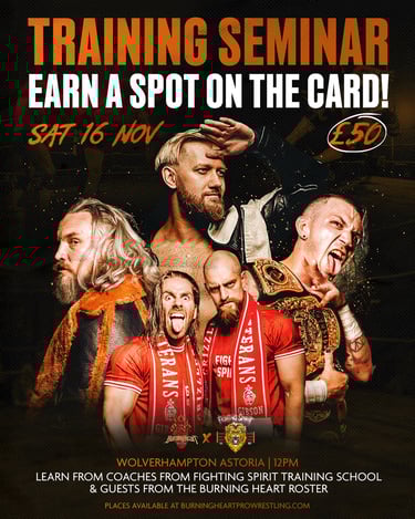 Working on a Freelance retainer basis, I create all social media and marketing content for Burning Heart Pro Wrestling. With ties to WWE, TNA & AEW. Burning Heart is one of the biggest up and coming British professional wrestling entertainments in the UK.
